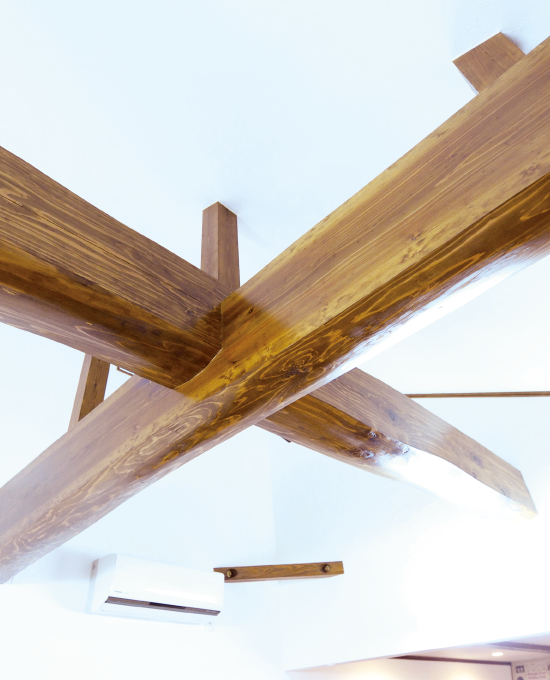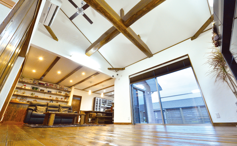 リビングに鎮座する梁は自慢の逸品。