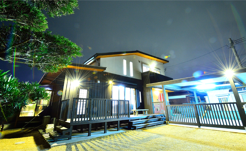 共有のお庭は二家族の共有スペースとして有効活用しています。